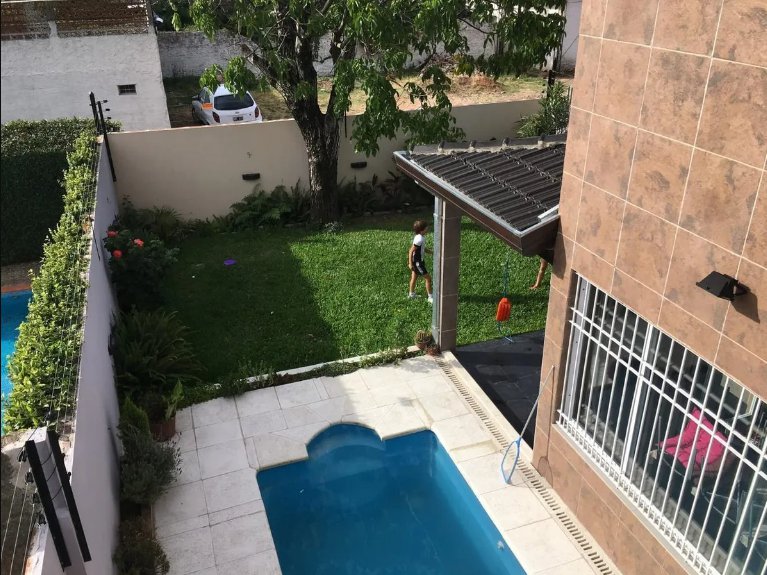 La casa tiene dos platas con espacios amplios y luminosos. En planta baja, se ubica el living y cocina-comedor con muebles bajo y sobre mesada, bar en el pasillo de distribucion, lavadero con capacidad para 2 lavarropas y secarropas, baño completo con bañera, una habitación espaciosa con placard (GYM, oficina, Play Room); en el exterior, galeria techada con parrilla sistemaq gillotina de acaero, solarium y piscina con filtro. Jardín y fondo parquisado con grama bahíana con sistema de riego por aspersión.