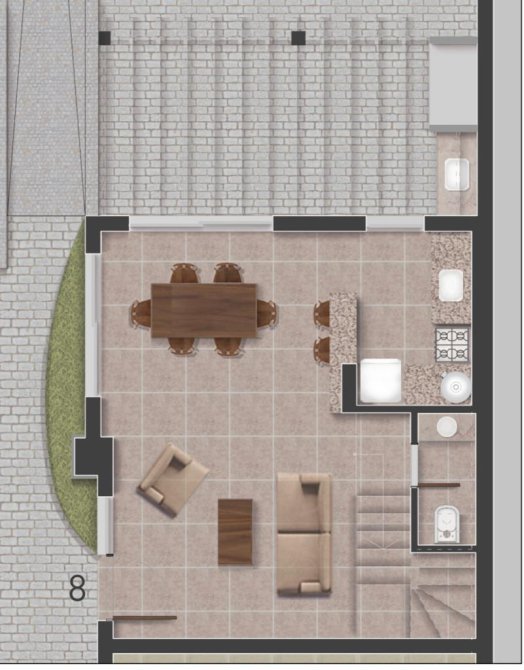 Espacio independiente con parrilla y mesada. cochera subterranea. Baulera. Caminos y patio de adoquines. Instalación de agua y gas por termofusión.