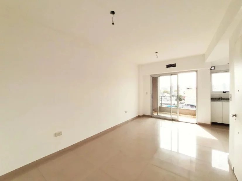 Es un Semipiso de 3 ambientes al frente con espacio guarda coche incluido en el valor, en una torre a estrenar de 7 pisos, y con 14 unidades. Está ubicado en una zona de continuo crecimiento, a 3 cuadras de la Avenida Hipólito Yrigoyen y a 5 cuadras de la Avenida 25 de Mayo y con la mejor orientación hacia el Este. Entre sus características principales se destacan un frente libre con rejas, amplio lobbie de recepción, con sillones para relax y baño, la unidad está equipada con aberturas de aluminio con DVH y ventilación cruzada por frente y contrafrente. Las comodidades son las siguientes: comedor (5,00 x 2,87) con piso de porcellanato brilloso grande, y cocina integrada (2,87 x 1,35) con piso de porcellanato brilloso, y equipado con muebles de bajo mesada de melamina, y cocina marca Orbis; balcón (2,50 x 1,45) con piso de cerámica; pasillo de distribución (3,00 x 1,00); 1º dormitorio (3,00 x 2,94) con piso de porcellanato brilloso, ventana al contrafrente, y placard de 2 puertas en melamina; 2º dormitorio (3,00 x 2,35) con piso de porcellanato brilloso, ventana al contrafrente, y placard de 2 puertas en melamina; y baño con piso y revestido en cerámica.