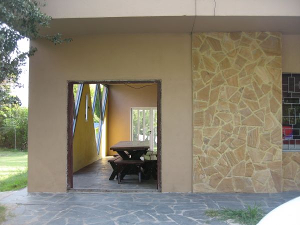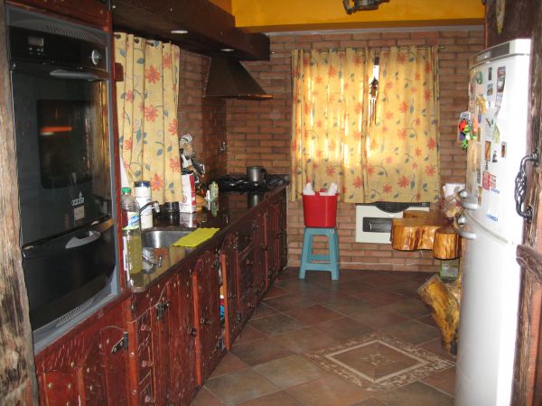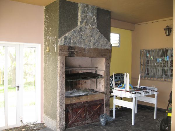 Hermosa casa, porton al frente, garage con capacidad para dos vehiculos, quincho con parrilla, cocina con muebles de sobre y bajo mesada en quebracho, lavadero, baño completo, dos dormitorios, living-comedor con hogar a leña.