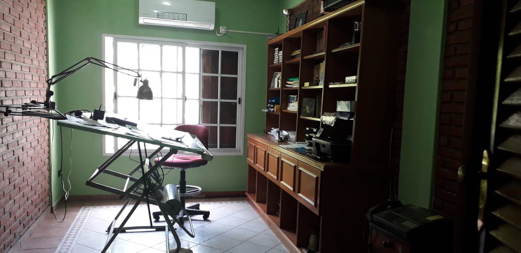 PLANTA BAJA: Consta de amplisimo living-comedor c/ A/A F.C. y salamandra,estudio o dormitorio, toilette, cocina-comedor con muebles bajo mesada y alacena realizados en excelente calidad de madera y garaje xa dos autos c/fosa y portón automatizado. parque con quincho c/ protección para el invierno , dos caniles y cuarto de enseres
