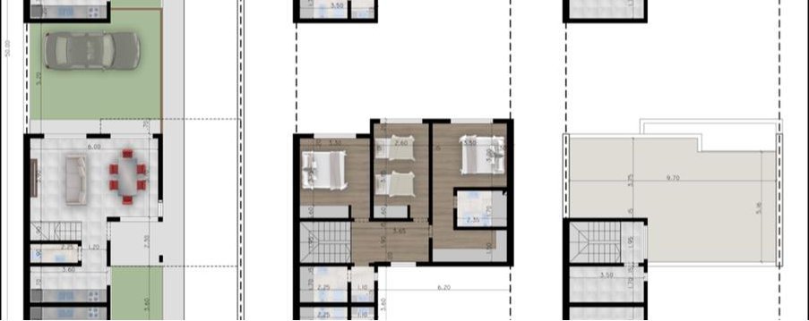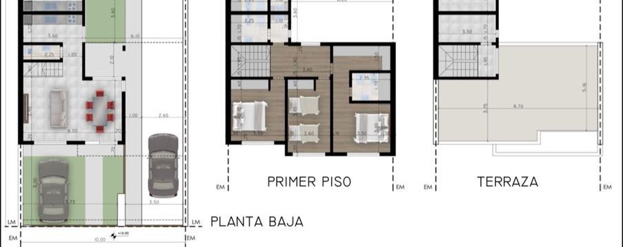 Viviendas de 160 m2 con terraza y amplia cochera ( tres unidades). Disponible UF1 (al frente) independientes con entrada de auto individual.
