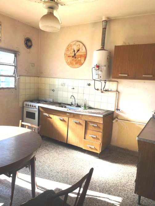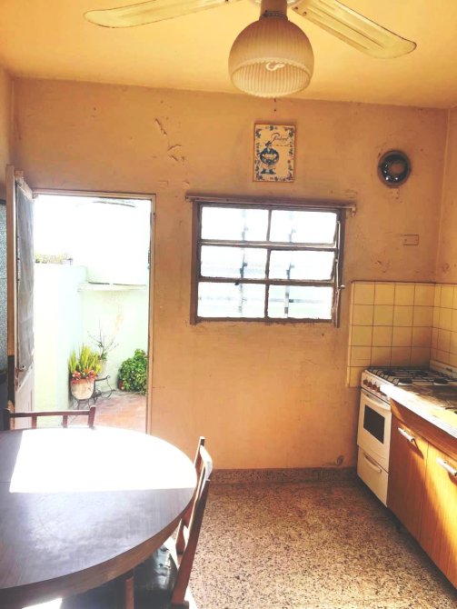 DEPARTAMENTO DE TRES AMBIENTES EN PRIMER PISO X ESCALERA QUE CONSTA DE DOS DORMITORIOS CON PLACAR, LIVING-COMEDOR, COCINA CON MUEBLES BAJO Y SOBRE MESADA, VENTILADOR DE TECHO, BAÑO COMPLETO CON RECEPTACULO CON DUCHA Y PLACARD, PATIO ATERRAZADO. ES APTO PARA PROFESIONAL