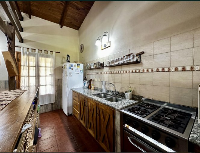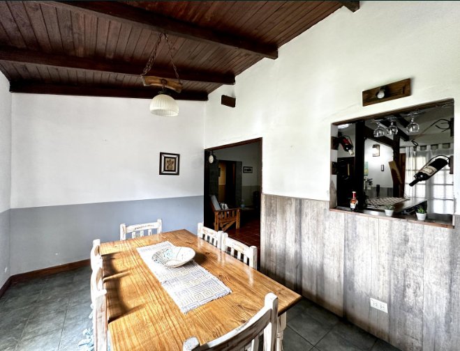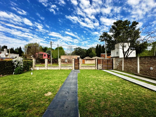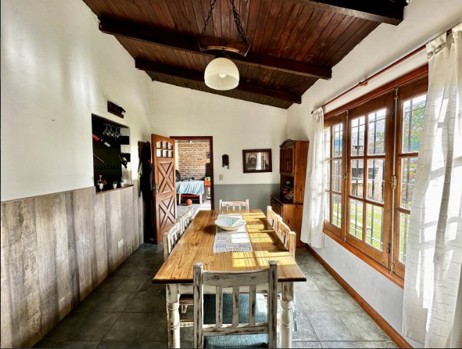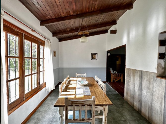HERMOSA CASA ESTILO CAMPO CON PORTÓN AUTOMATIZADO. IMPLANTADA SOBRE DE TERRENO DE 15X53 QUE CONSTA DE AMPLIOS AMBIENTES: DOS CÓMODAS HABITACIONES, AMBAS CALEFACCIONADAS POR TIRO BALANCEADO, BAÑO COMPLETO, LIVING COMEDOR CON COCINA INTEGRADA CON BARRA DESAYUNADORA, COMEDOR DIARIO CON VISTA AL PARQUE, BAÑO COMPLETO.