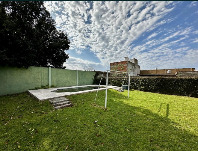 PORTÓN AUTOMATIZADO, COCHERA CUBIERTA PARA DOS COCHES, GALERÍA, PISCINA DE FIBRA, PARRILLA
